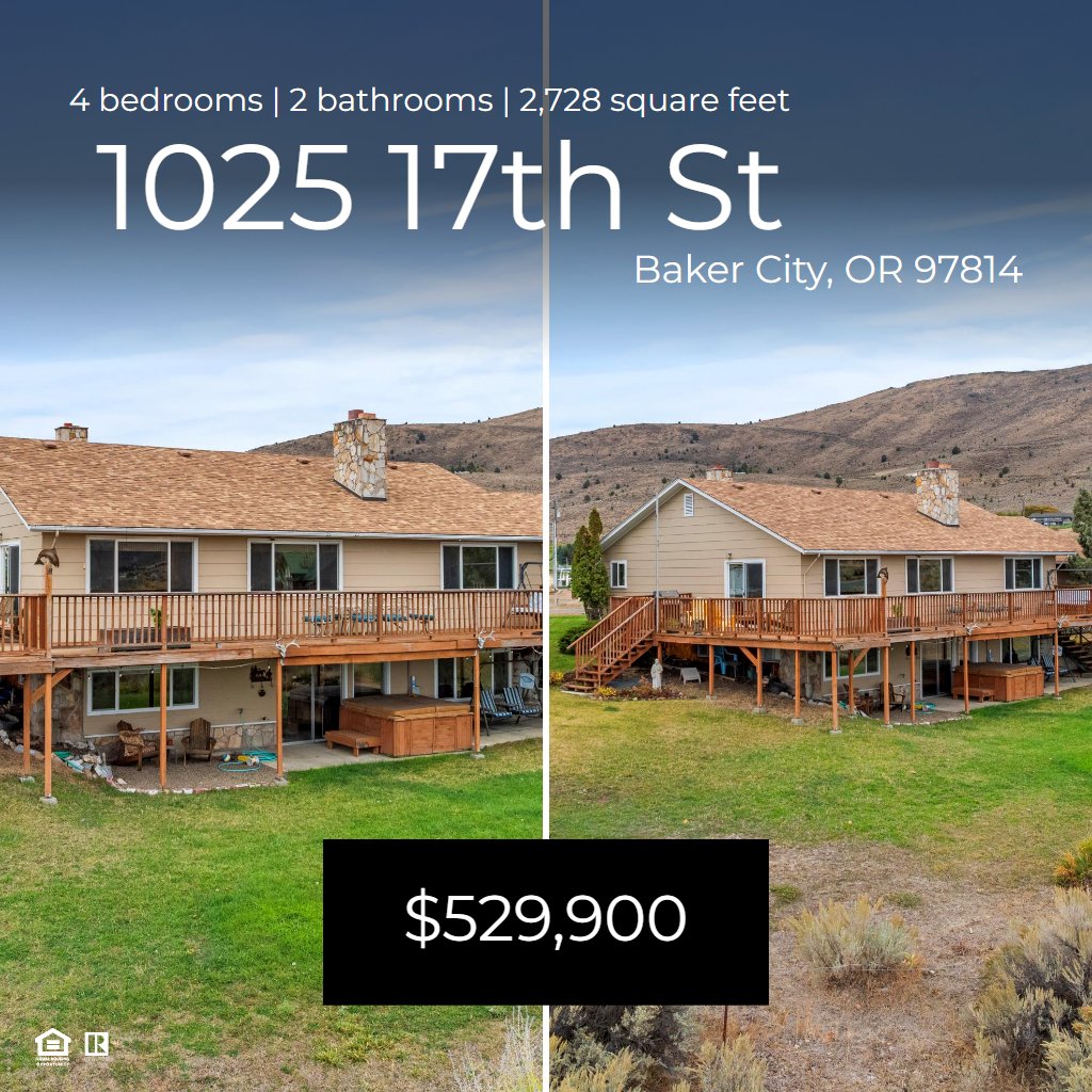 Perched on the edge of town with sweeping panoramic views of the Elkhorn and Eagle Cap Mountains and the Baker Valley, this spacious daylight basement home offers both comfort and versatility. The 4-bedroom plus office, 2-bath layout is thoughtfully designed with 2 bedrooms and 1 bath on each level, providing an ideal setup for multigenerational living or guests. The lower level includes a convenient kitchenette, while interior updates such as LVP flooring and newer appliances enhance the home’s modern appeal. Outside, enjoy an oversized two-car attached garage, additional storage space, and over 1.5 acres of land that offers privacy and room to expand—all just minutes from Quail Ridge Golf Course and town amenities.